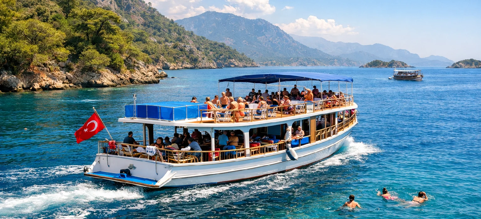 Ortaca günübirlik tekne turlarıyla unutulmaz koyları keşfedin, stres ve yorgunluktan uzaklaşarak doğayla iç içe huzurlu bir gün geçirin.